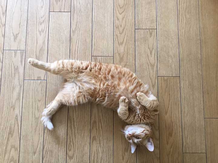 こんな感じでいつも触れ~とおねだりする猫