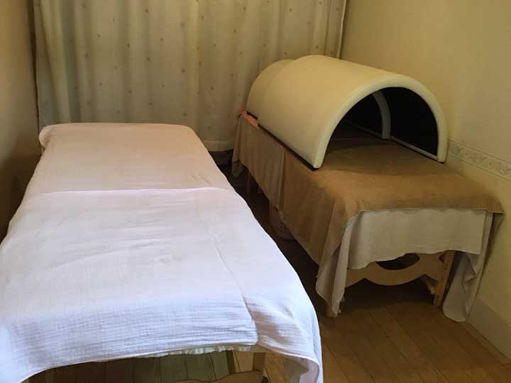 そこで秋、冬だけ気軽に入っていただけるように施術用のベッドの隣に遠赤外線ドームを設置してみました。