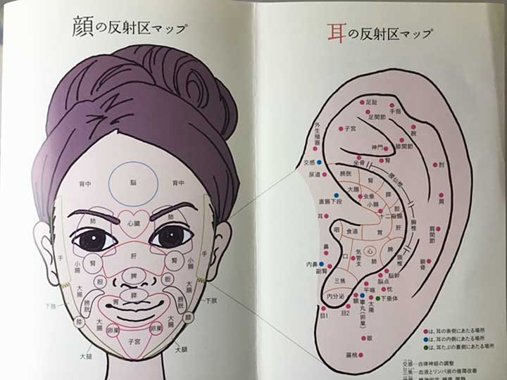 目の下のたるみやくすみは腎臓の反射ゾーン、ほうれい線は膀胱の反射ゾーン、(他の本では ほうれい線は大腸の反射ゾーンで髪の生え際が女性ホルモンで載っていました)