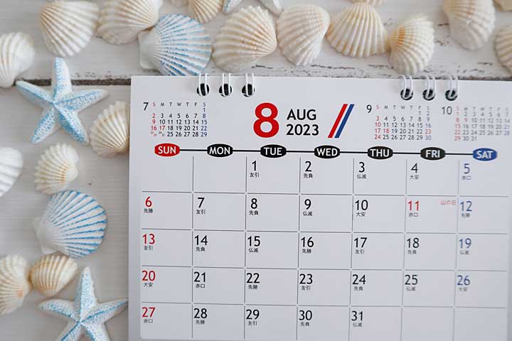 8月のお休みです。8月6日(日)7日(月)21日(月)です。(お盆期間中は休まず営業いたします)