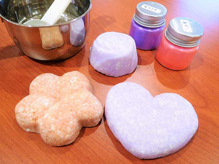 自分のお肌のお悩みや用途に合わせて無添加クリームとハーブ石鹸を作ります。石鹸は簡単に作れる石鹸パウダーを使います。