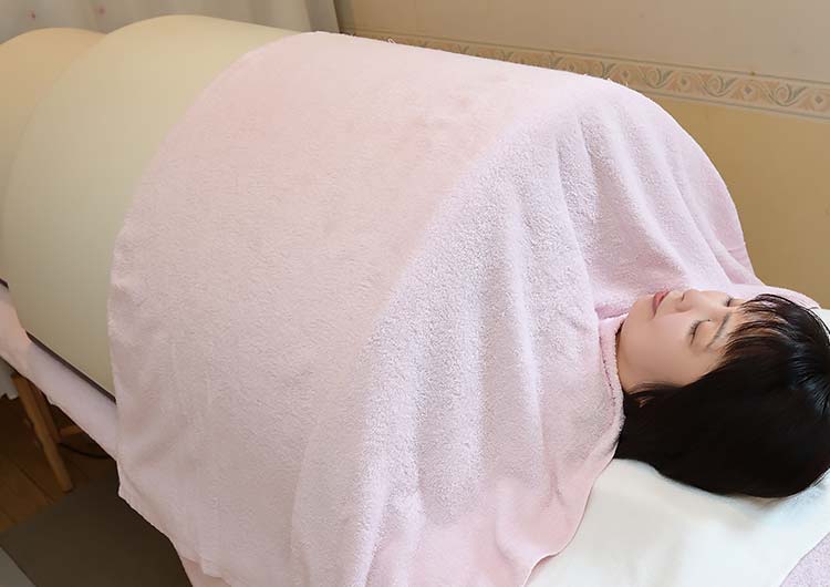 遠赤外線ドームサウナ 施術しながら温めるコース プラス1500円で体験できます。