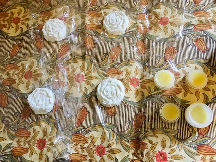 石鹸はクレイやヒマラヤソルトなども入れて 薔薇の形に作りました。石鹸は一週間ほど乾燥させると使えます。