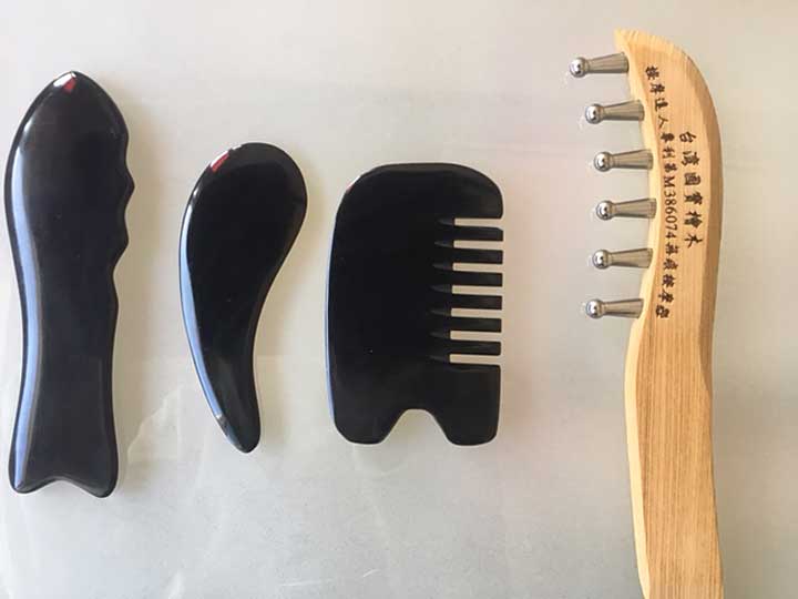 黒いのが「水牛の角カッサプレート」と右側が痕がつかない「無痕かっさ」↓↓