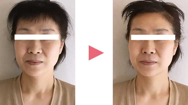 頬のラインをスッキリさせたいとのご要望でした。頬の位置が上がりフェイスラインがスッキリしました。