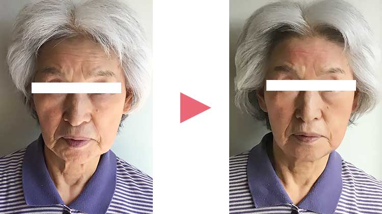 筋肉の拘縮を取り、筋肉をぷりっとさせる施術をしました。シワが目立たなくなりました。