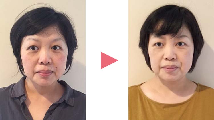 お顔の幅が小さくなり、左右差(歪み)も少し改善されました。お肌にも透明感がアップしました。