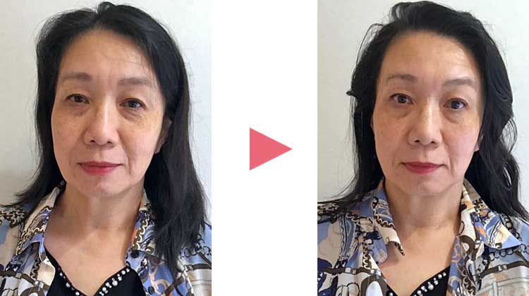 目の下のたるみを気にされていました。まぶたと目の下のたるみがアップして若返りました。